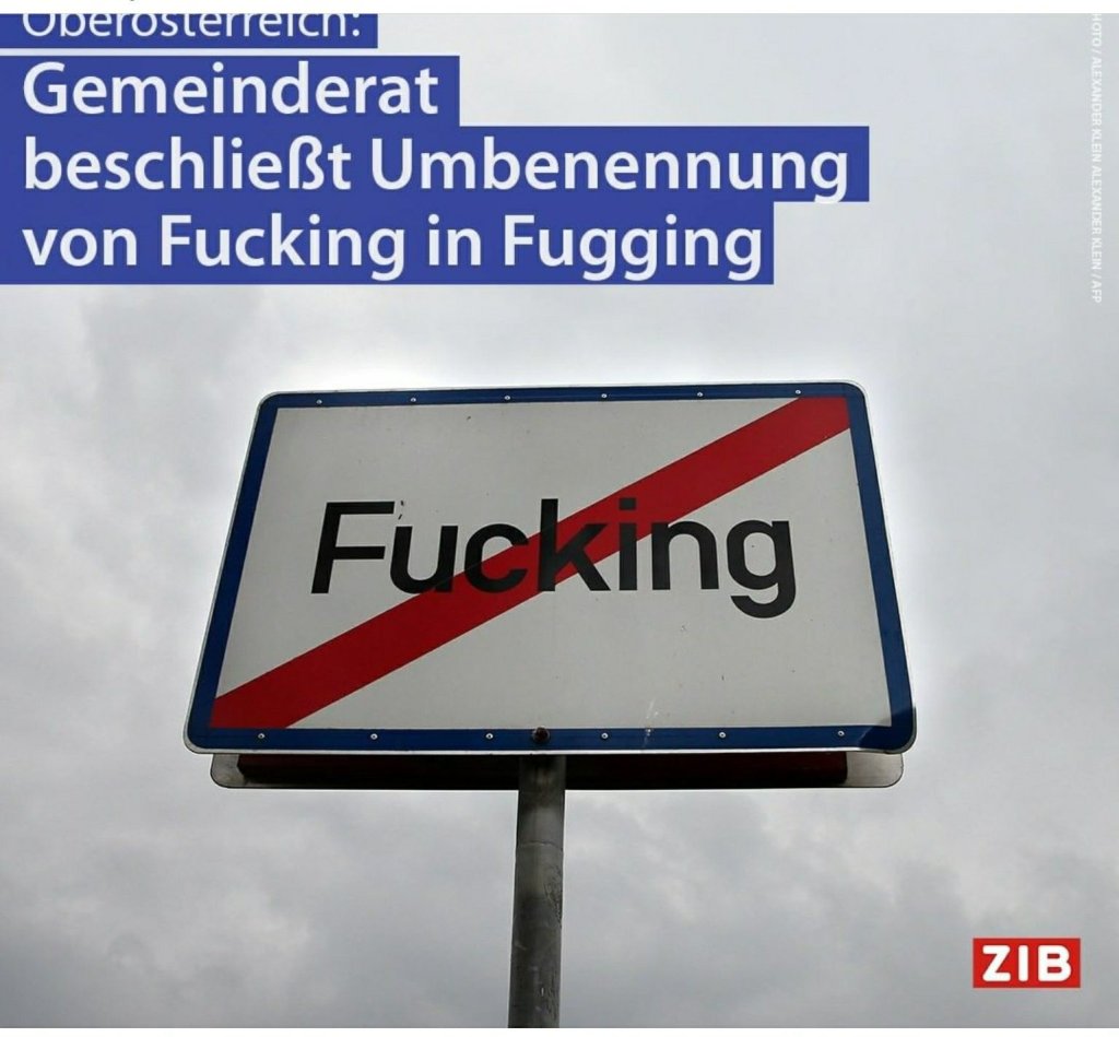 Vamos de post diferente? Uma cidadezinha no estado da Alta-Áustria decidiu trocar de nome. De “Fucking” para “Fugging”. Há anos, “Fucking” é motivo de piada, aqui na Europa , além de ter suas placas serem roubadas. A galera cansou, literalmente.